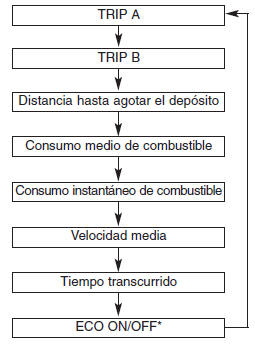 El ordenador de a bordo es un sistema de información del conductor controlado por un microordenador que muestra la información relacionada con la conducción, cuando el interruptor de encendido está en la posición ON. Todas la información de conducción guardada (excepto cuentakilómetros total) se borra al desconectar la batería. Tipo A