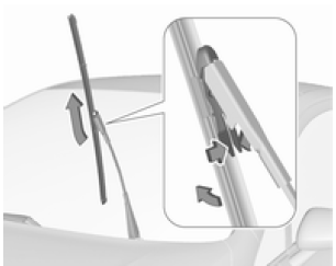 Levante el brazo del limpiaparabrisas hasta que permanezca en la posición elevada. Presione las fijaciones de ambos lados, incline la hoja de la escobilla en ángulo de 90 del brazo del limpiaparabrisas y extraiga hacia arriba. Inserte en el orden inverso. Baje el brazo del limpiaparabrisas cuidadosamente. Escobilla de la luneta trasera